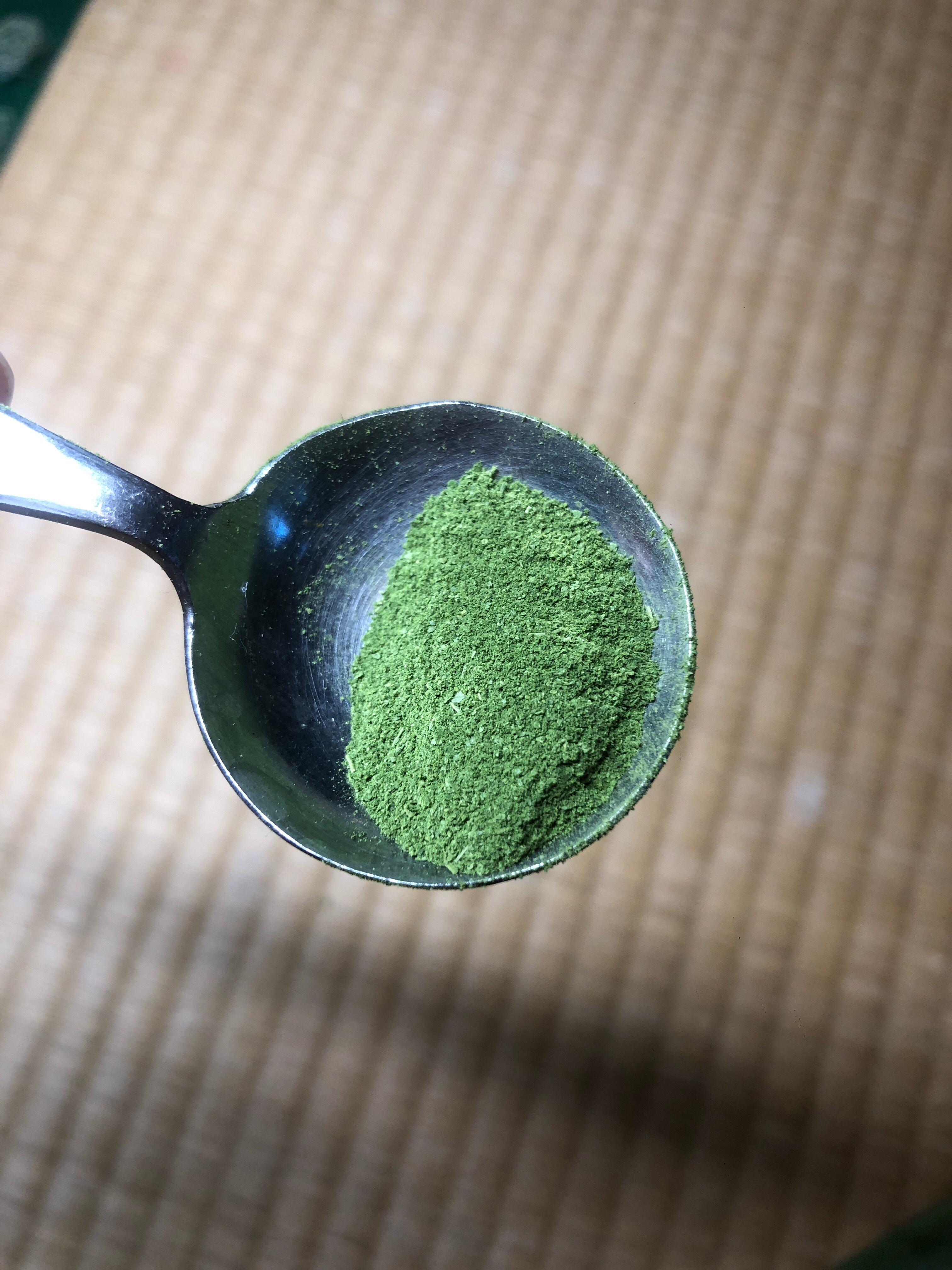 細い茎の部分も葉と一緒にパウダーにしておりますので、小さな小さな茎のカケラも入っています。ご了承ください。