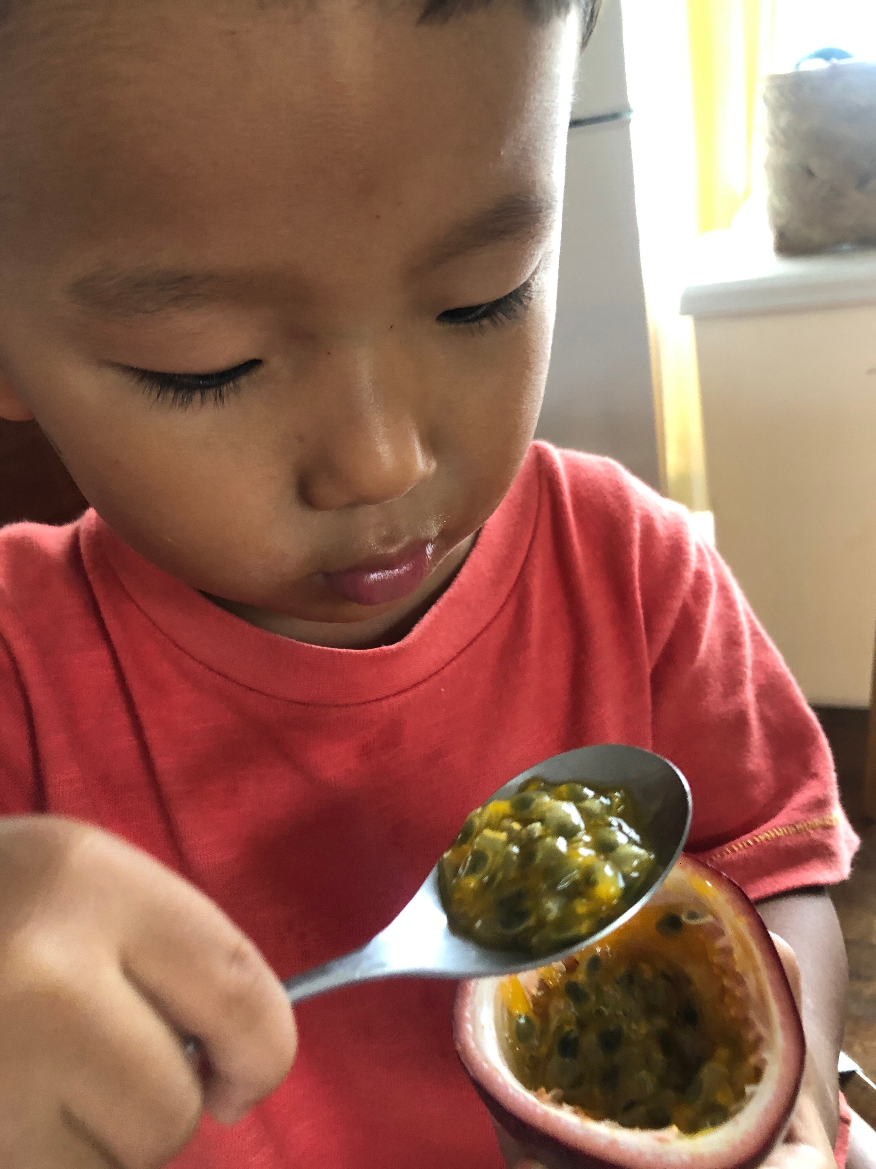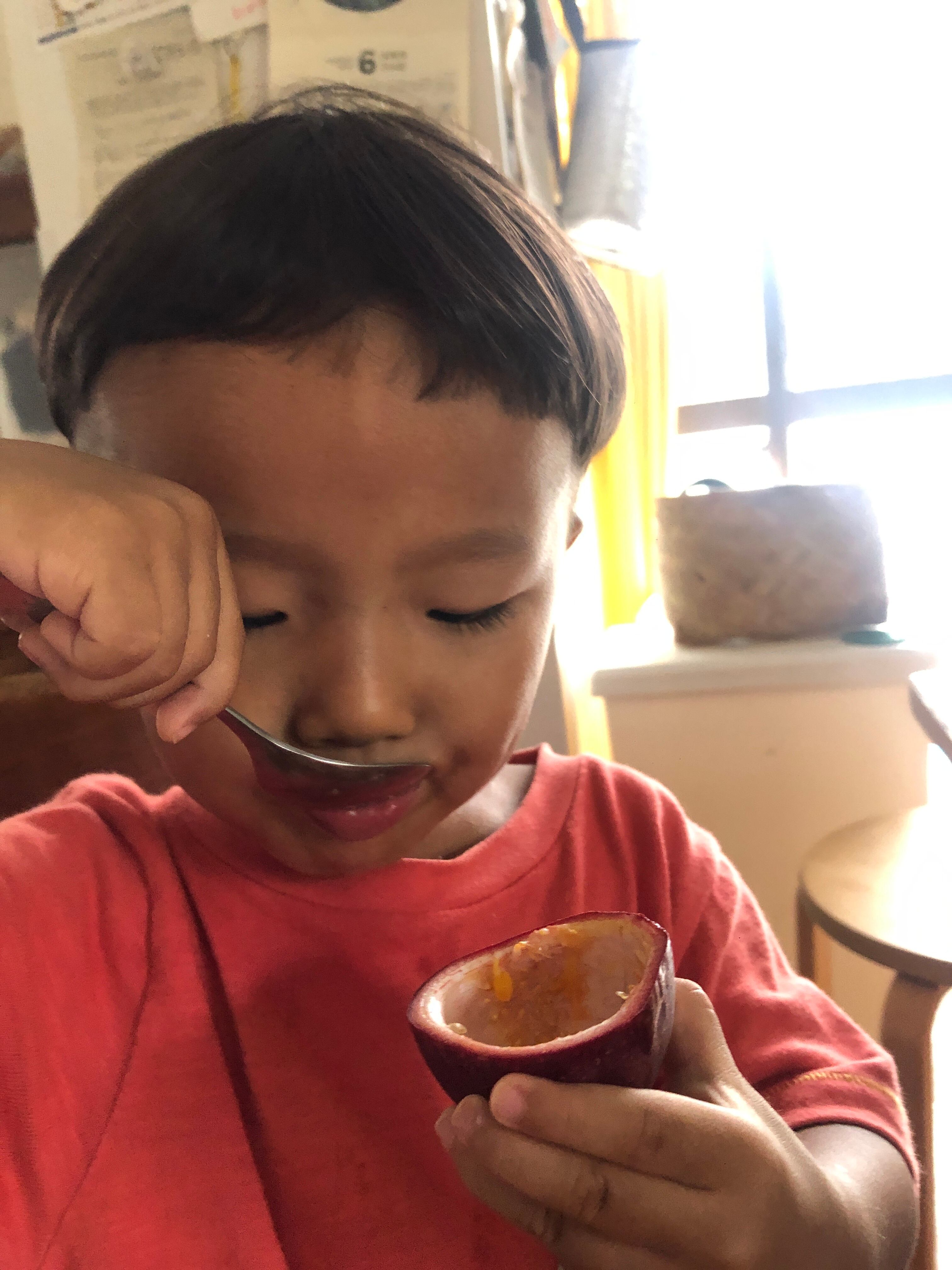 ポノポノ畑ではパッションは育てている本数が少ないので、毎日、少しずつ、落ちるのを待ってから、収穫となります。